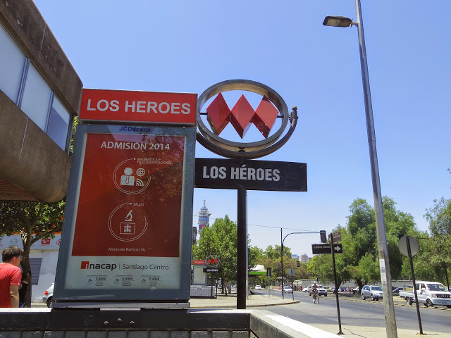 サンティアゴ国際空港(SCL)から"Centropuerto"社のバスで約30分。メトロ・Los Heroes駅前に到着。