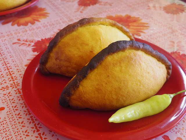 サルテーニャは外観はクッキーだけど中にアツアツのお肉が入っている。トウガラシと一緒に食べるのが現地スタイルだけど、辛すぎるのでそんなことはしなかった。