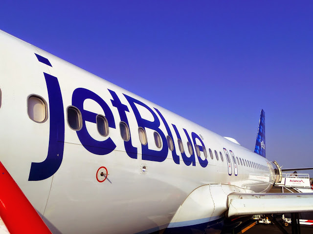 ジェットブルーを使って、プエルトリコからアメリカ経由でコロンビアへ向かいました。