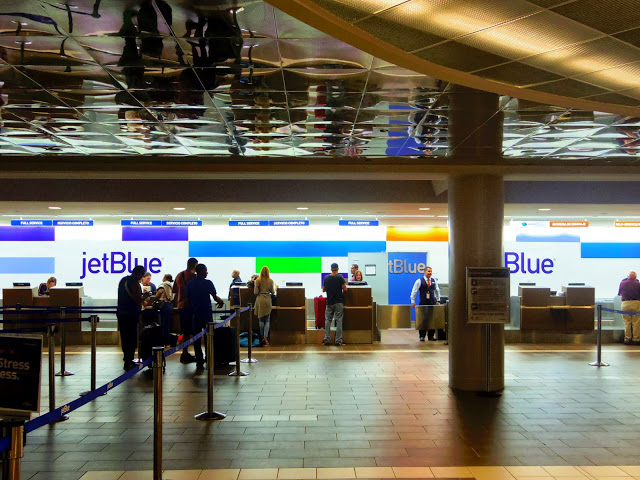 JFKで使用済みなので、慣れた手つきでチェックイン完了。ジェットブルーはLCCなのだが、預け荷物は1つまで無料となるので遠慮なく預ける(2つ目は50ドル、それ以上は100ドル追加)。